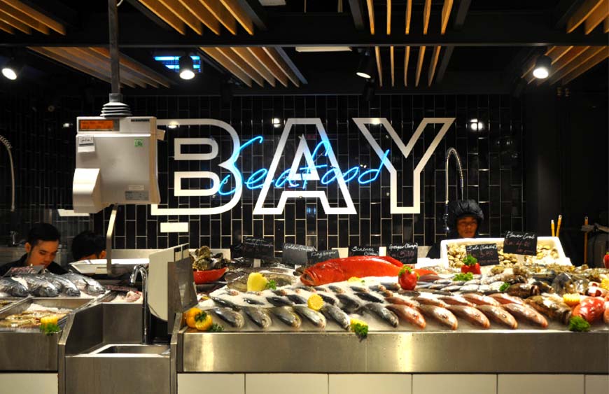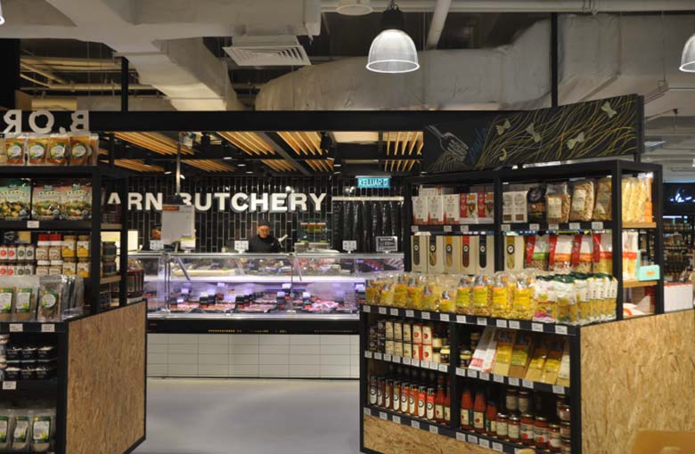 The supermarket itself consists of Plan B Roasters(coffee point), S.Wine and Booze. It (non-halal areas). The supermarket retail area consists of the Fruit & Veg area, Diary & Frozen Foods, Malaya Kitchen, Organic & Wellness, Butchery, Seafood station, Gourmet, Bakery & Bwitch’d, the HABA (Household and Beauty) area, and a concessionaire areas.